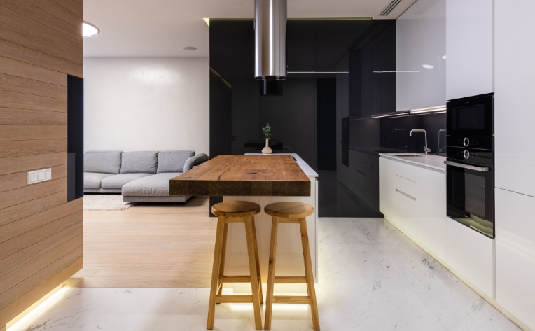 As you determine your wants and needs for the space, narrow down your choices to whatever solutions fit best. Doing so will help you decide on a complementary secondary floor, like hardwood floors or engineered wood flooring. After determining the kind of flooring you want, you can consider other elements that are important for creating a seamless transition between two different floors and different zones.